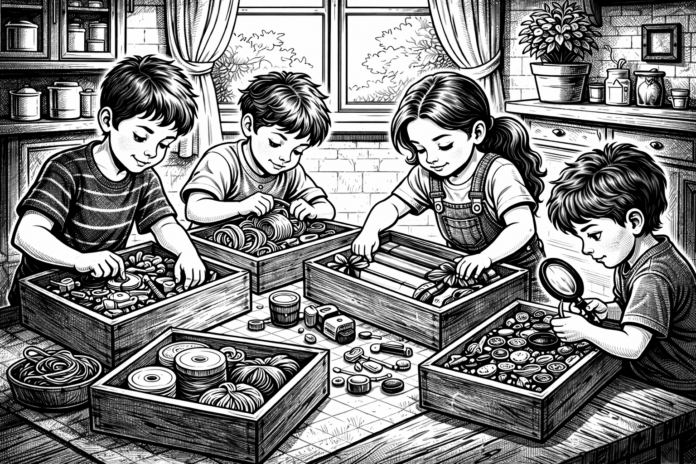 Feitas as designações, passou a descrever os cargos: “Vocês serão os chefes responsáveis dessas áreas, a quem sua mãe e eu recorreremos sempre que precisarmos desses materiais. Devem procurar e guardar nessas caixinhas de madeira todos os materiais que acharem, sobra de obra ou do cotidiano.”