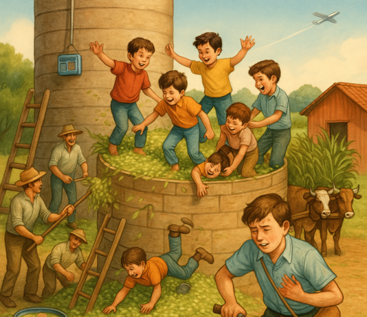 O milho estava no ponto de pamonha, e a ensilagem para guardar a forragem para o gado de leite acabara de começar....