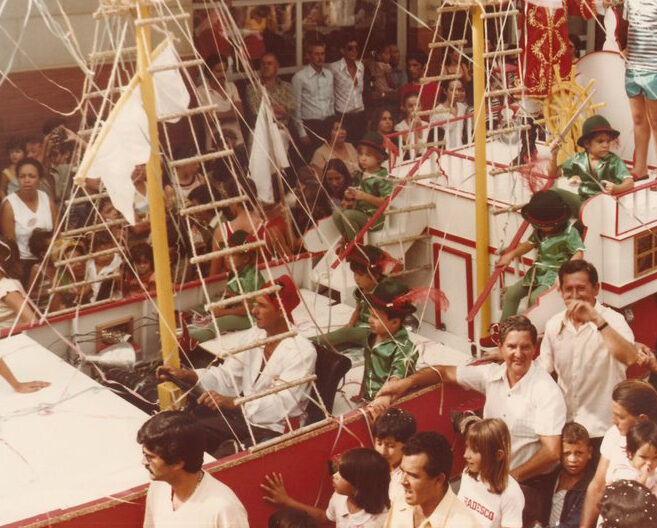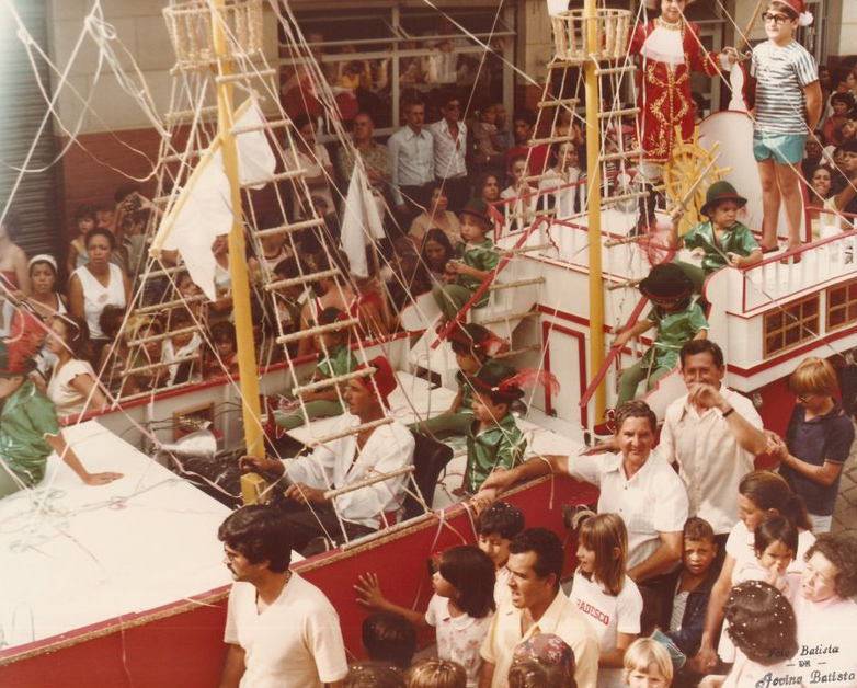 Isso foi quando o Bloco dos Democráticos ia sair de Peter Pan e eu ia ser o canhoneiro do navio do Capitão Gancho! Acontece que nesse navio tinha dois canhões que lançavam confete. Você punha o confete dentro do canhão, travava tudo e ligava um extintor de incêndio pra dar pressão até soltar a borracha que prendia a ponta. Quando eu vi que o soldador do canhão era o Chicão, que nunca tinha soldado na vida, eu comecei a ficar com medo! Daí, na hora mesmo do bloco sair, quando eles falaram que eu ia ter que ir sentado em cima daquela bomba, eu sumi do mapa! O povo só faltou me linchar! Acho que no final das contas foi o Cardão Coelho que assumiu o meu posto, mas deu tudo certo!