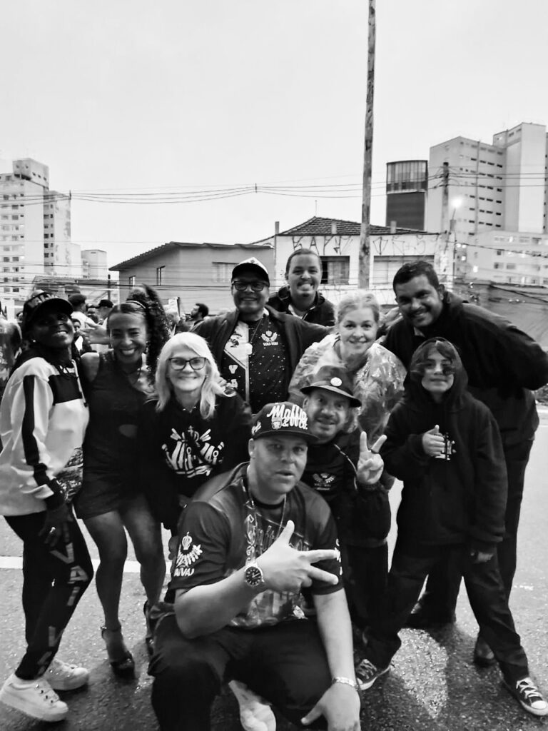 Passada essa fase de começar a dançar, a gente ainda não tinha ido a um baile. Isso só foi acontecer no início de 2000. Antes de terminar o ano anterior, dois discos muito importantes foram lançados: “Seja como for” do Xis e “Versos Sangrentos”, do Facção Central. Ambos eram muito politizados e discutiam a realidade da sociedade brasileira. Nós estávamos eufóricos com aquelas músicas e já tínhamos um acesso maior aos trabalhos por conta do surgimento do CD. Um dia, chegou a notícia de que o Nelson Triunfo e a Funk Cia iriam se apresentar no 18, casa de shows em Pouso Alegre. Na data do show, o evento estava marcado para cinco da tarde e chegamos às duas! Ainda não tinha ninguém e ficamos por ali, até que apareceu o Nelson Triunfo. Era um dos caras mais importantes do cenário e estava ali na minha frente! Nunca pensei que pudesse vê-lo de perto, muito menos pegar na sua mão. Naquele dia, eu tive a oportunidade de ver o Edvaldo e o Fião dançarem com ele e com a Funk Cia inteira! Até então, achava que eles eram de outro planeta! Aquele evento foi um choque de realidade porque eu também descobri que havia grupos em Pouso Alegre que se apresentavam na região. Um deles, chamado “Visão Geral”, tinha como integrante o Serginho, irmão do Edvaldo. Dogueto, Paula do Prado e Néia também eram integrantes. Ali eu pensei: “Acho que dá pra gente fazer isso também! Se os vizinhos conseguem, a gente consegue!”