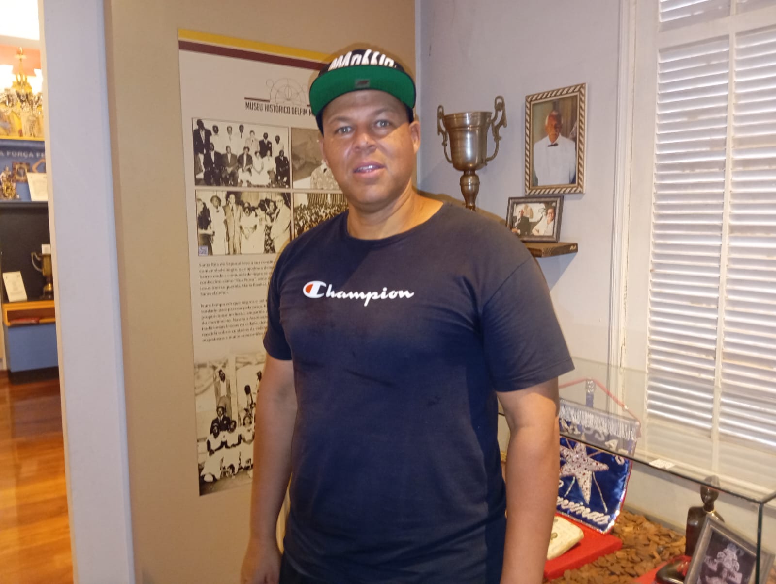 Sou de 1984. Minha mãe foi visitar a minha avó em Itajubá e, por acidente, acabei nascendo lá, mas passei a minha vida inteira em Santa Rita. Tive uma infância muito parecida com a de muitos meninos que cresceram em famílias pobres. Minha primeira casa foi na travessa próxima ao bar do senhor Roberto, perto da pracinha da Câmara. Foi ali que eu tive o meu primeiro contato com a Escola de Samba Azul e Branco e aquela experiência transformou a minha vida.