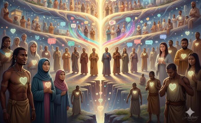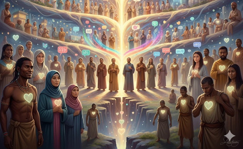 Logo após a Ressurreição de Jesus o Espírito Santo envolveu os discípulos que estavam em oração e eles, com fortaleza e destemor, pregaram a palavra para uma multidão de estrangeiros que estava em Jerusalém e cada pessoa, de lugar e raça diferente, a entendeu em sua própria língua. Deus não discriminou ninguém. Todos ouviram a mensagem. Há um só Deus e um só povo.