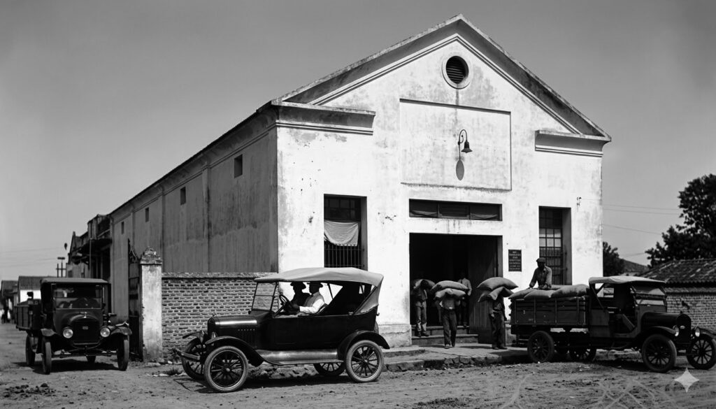 O café se consolidava como o grande impulsionador do progresso em Santa Rita do Sapucaí. As imagens e descrições da época revelam armazéns modernos, com grandes estoques e estrutura adequada para o beneficiamento do produto. Um exemplo emblemático é o armazém do coronel Francisco Andrade Ribeiro, equipado com tecnologia considerada avançada e operado com base em conhecimentos agronômicos atualizados. Outro destaque é o amplo armazém vinculado à ferrovia que evidencia a integração da produção local com as redes de transporte — em especial a Estrada de Ferro Rede Sul Mineira, essencial para o escoamento do café. Esse aspecto é fundamental, pois demonstra que Santa Rita já se encontrava conectada a mercados mais amplos, inserindo-se em uma dinâmica econômica que ultrapassava os limites do município.